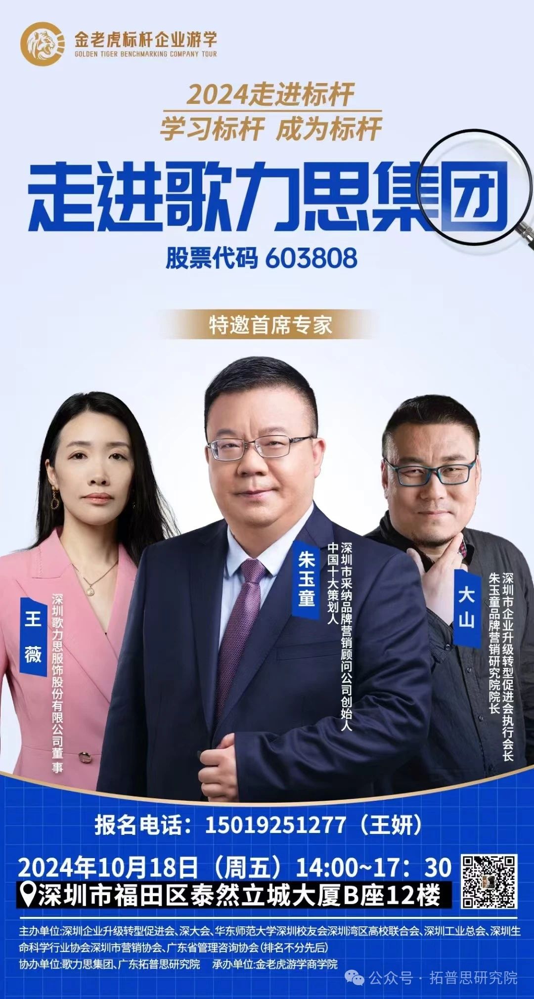 采纳品牌研究院院长、深圳市企业升级转型促进会执行会长大山老师详细介绍了游学的背景、目的和期望达成的目标。在回顾往期游学时,他提到,金老虎标杆企业游学系列活动旨在通过走进标杆企业参观学习,为来自不同领域的企业家们提供一个高效链接、共同成长的平台。歌力思集团作为国内女装行业的领军企业,其成功经验无疑具有极高的学习价值。