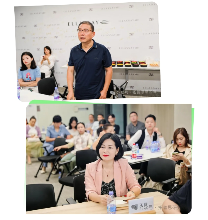 随后,歌力思服饰股份有限公司董事王薇王总与企业家们进行了深入的分享与交流。王总分享了歌力思在产品定位、品牌建设、产品创新设计、市场布局与营销、渠道运营、人才吸引、供应链体系搭建等方面的宝贵经验,并就企业家们关心的问题进行了细致的解答。这一环节不仅加深了企业家们对服装行业的理解,更为他们提供了宝贵的商业启示。