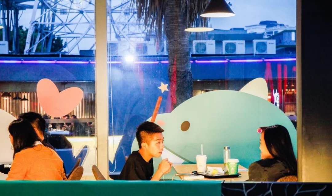 众多的IP元素组合一起,如现在流量上亿的瞄小兔,网红斑布猫,还有猪小屁等IP植入到餐饮门店能使整个场景烘托出来,瞬间增加门店的氛围感。