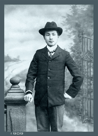 他用哈苏相机拍下自己穿着一身中山装