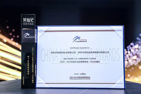 查看详情11月2日,由《经济观察报》主办,中国广告协会指导的“品牌向上——2021年度营响大会”,暨第十九届杰出品牌营销年会的获奖名单正式发布。深圳市茶仙记爱的茉莉香(茶仙记品牌公司)在第十九届杰出品牌营销奖年度单项奖中荣获杰出品牌营销奖-杰出传播奖。 茶仙记品牌 “好一朵美丽的茉莉花”项目获奖奖杯 经观传媒主办的杰出品牌营销年会截止目前已成功举办至第十九...