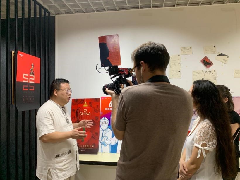 采纳设计总监梁总也接受了采访,并向记者展示海报设计草图。他表示每一个构思理念都包含着设计师对中国抗疫的信心和医护人员的敬佩。国人们团结一心,才是打赢这场疫情防控战役的关键。