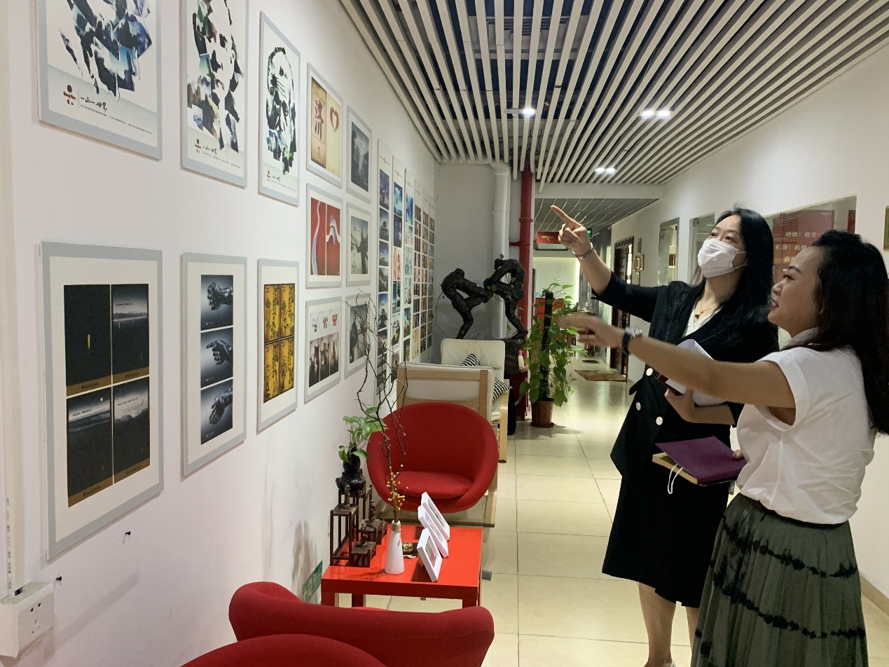 会后领导一行还参观了采纳疫情期集思广益创意设计的“抗疫公益宣传海报”,区人大副主任章海蓉对此表示高度的称赞与认可。