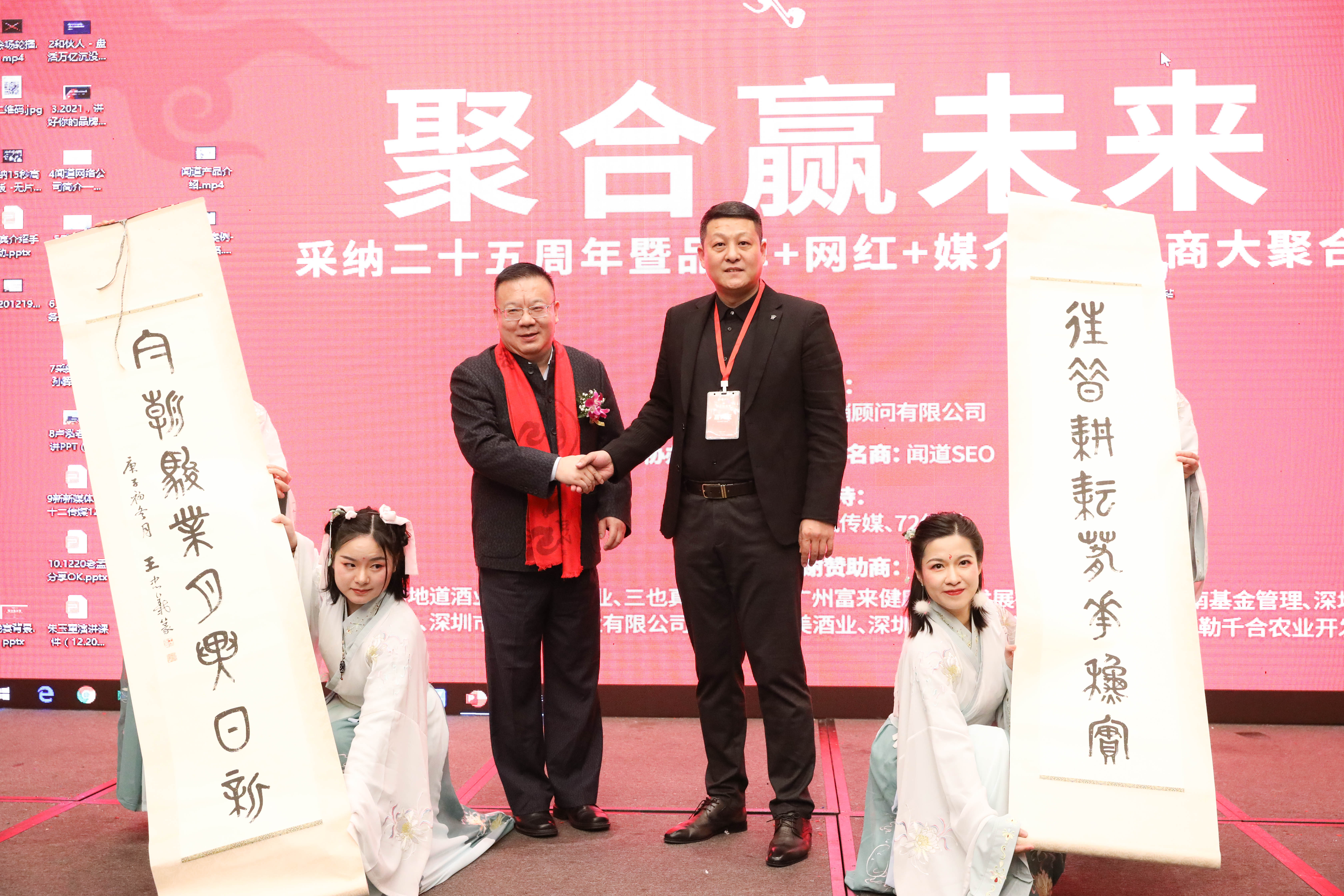庆典上半场,是新思维、新模式的有利冲击。采纳创始人朱玉童先生饱含深情的回顾了采纳25年发展史,一路坎坷中创造众多中国营销经典;万泽集团医药总经理陈岚女士讲解了他们30年的专业与坚持,让金双歧取得了细分市场第一;北京和伙人董事长邱朝敏先生分享了营销的新模式,让大家看到了原来媒介也可以转换赛道,创造品牌传播的新路径;凤凰传媒CEO宋革先生以“讲好你的品牌故事”为分享主题,以生动案例讲述了凤凰卫视、凤凰网如何转变经营思路为城市、企业赋能;今日网红CEO无忌给大家讲述了当今网红的模式以及未来的发展趋势;闻道总经理讲述了闻道公司的ABC模式,以技术为营销赋能。