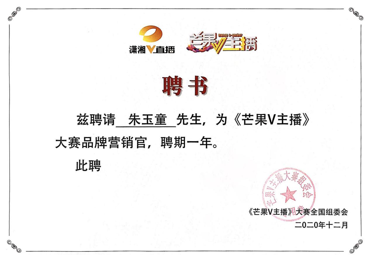 近日,中国著名品牌营销专家、深圳市采纳品牌营销顾问公司总经理朱玉童先生被聘请为《芒果V主播》大赛品牌营销官,朱玉童先生将与众位品牌专家一起为大赛出谋划策,贡献自己的智慧。