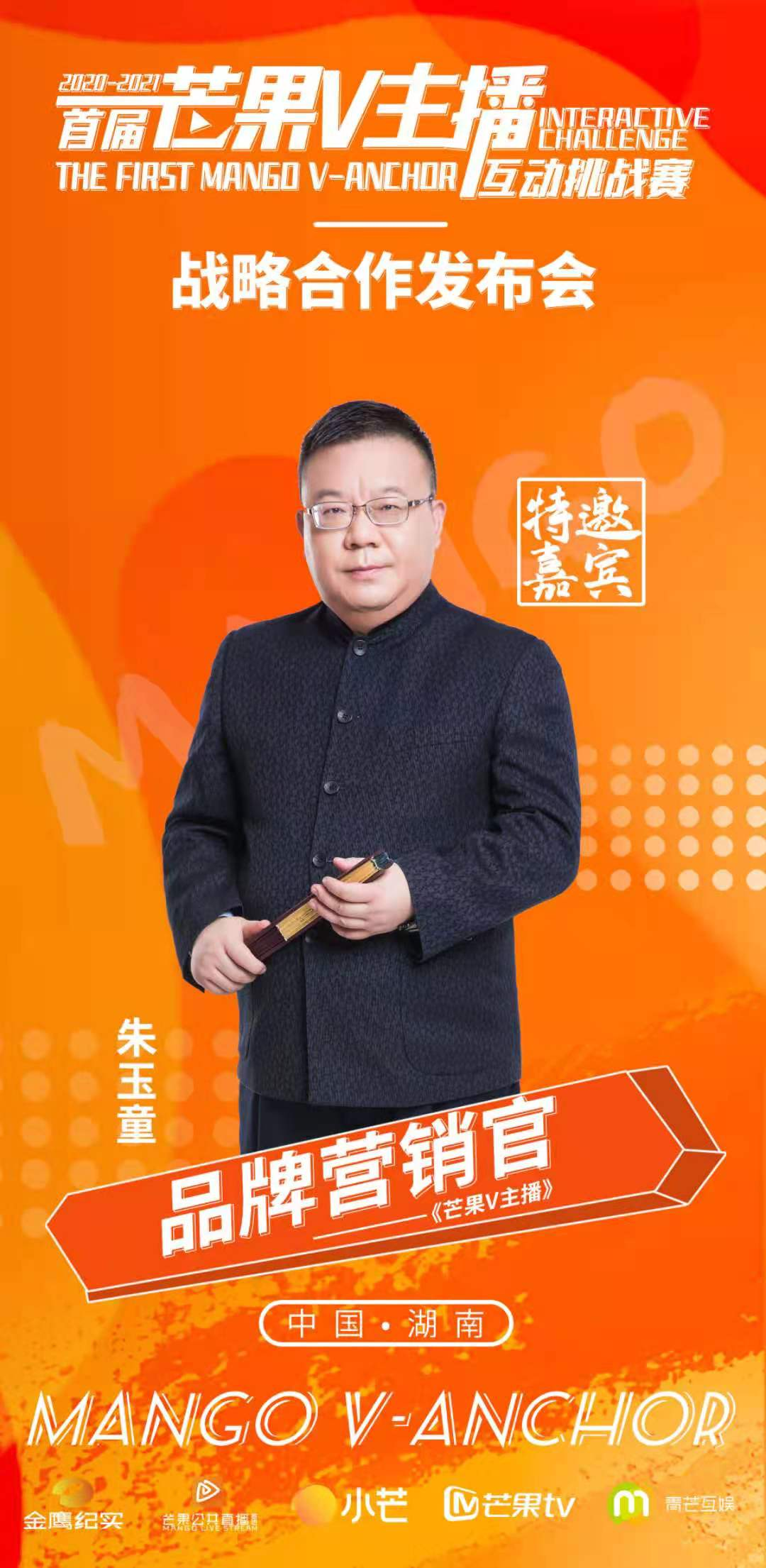 2021年4月18日,首届《芒果V主播》互动挑战赛战略合作发布会在湖南广电T2区演播厅盛大启动,来自全国各地的百强MCN机构、企业创始人、品牌方、实力主播共同参与了发布会,中国十大策划人、深圳市采纳品牌营销顾问公司总经理朱玉童先生作为本次大赛的品牌营销官(嘉宾导师)出席了本次启动大会。