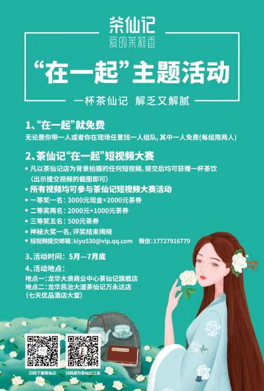 凡以茶仙记店为背景拍摄的任何短视频,提交后均可获赠一杯茶饮