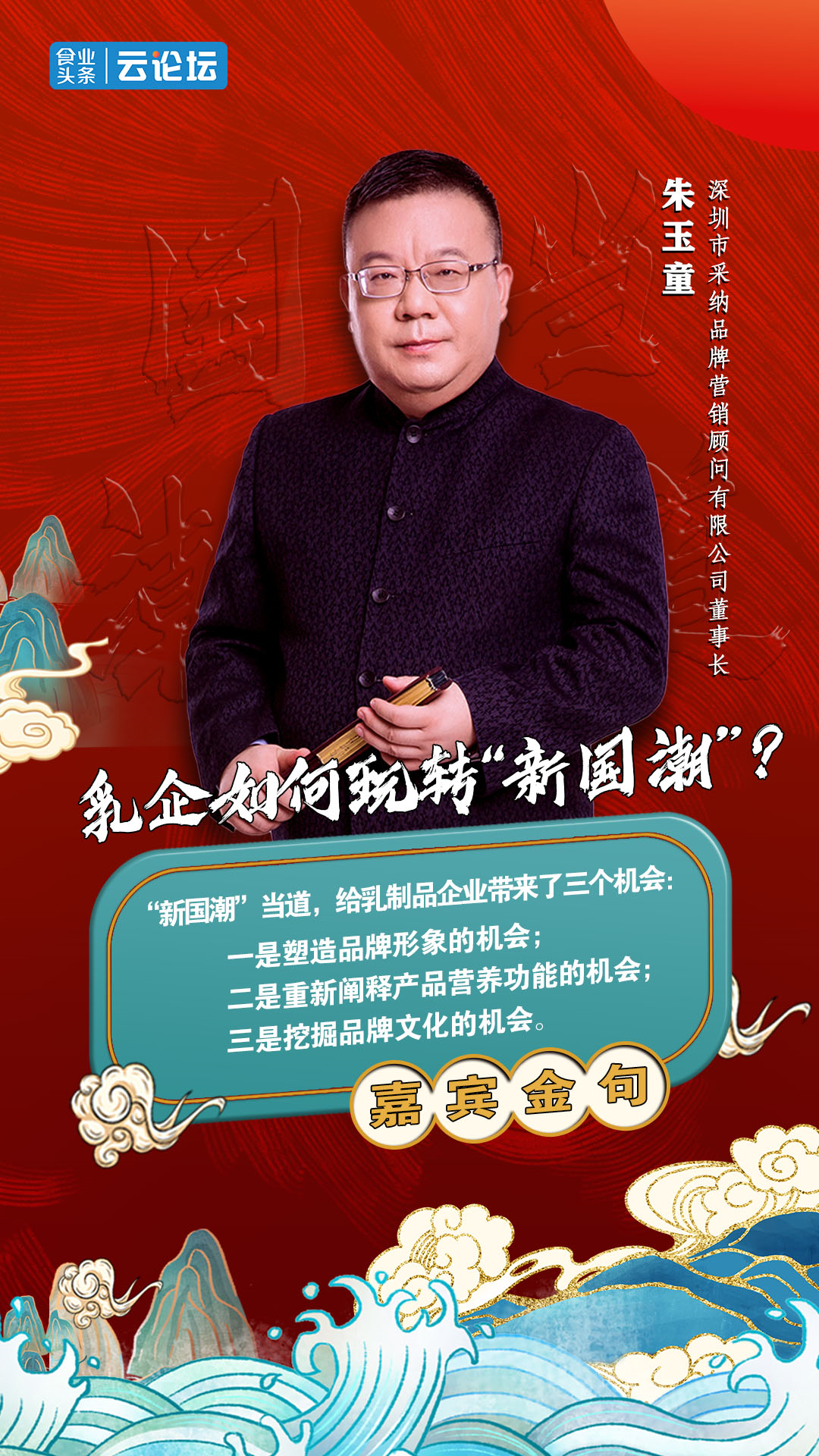 日前,新乳业联合食业头条,举办了《乳企如何玩转“新国潮”?》主题云论坛。本次云论坛由新乳业主编、华糖云商首席乳业研究员栗娟主持,以下是她和深圳市采纳品牌营销顾问有限公司董事长朱玉童的对话实录:
