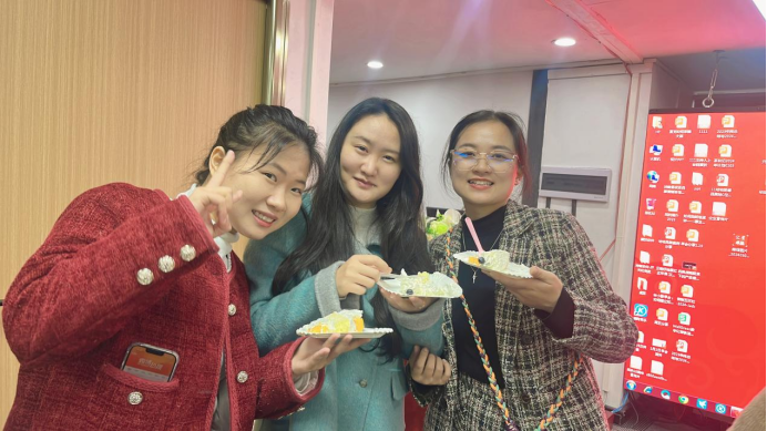 到了惊喜环节、为了庆祝3.8日女神节和校友会中部分同学的生日,校友会定了3个大蛋糕,大家一起为校友庆祝生日、大家一起唱生日歌、一起祝福现场的女同胞们节日快乐,过生日的校友非常激动,说过了一个非常难忘、非常幸福、愉快的生日,大家一起分享快乐、品尝蛋糕!