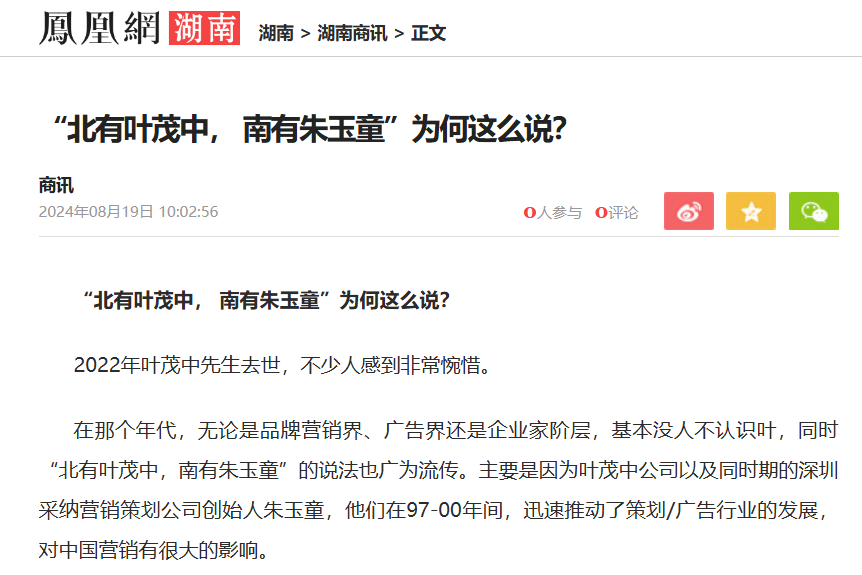 长期以来,北有叶茂中,南有朱玉童早在行业中流传。最近又有一些网站提及此话题,引发普遍关注。以下是链接——