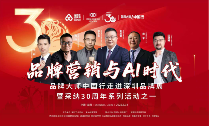 2025 年 5 月 14 日,一场聚焦品牌营销前沿,探索AI 时代机遇的行业盛会 —— 《品牌营销与 AI 时代》大会,在深国际华南数字谷专场盛大开启。本次大会作为品牌大师中国行走进品牌周暨采纳 30 周年系列活动的重磅篇章,由深圳工业总会、采纳品牌营销、深圳国际品牌周主办,品牌大师中国行、深国际华南数字谷联合主办,深圳市企业升级转型促进会、深圳市企业品牌建设促进会、凤凰网深圳、厉害猫AI、商道创投网、红光商学院、九合智方品牌策划机构、物道品牌、思慕府资本等众多单位协办,紫来轩、诗碧曼、SOD赞助支持,全媒宝ADVC 广告创投负责全网推广宣传,阿旺会务承办,吸引了来自各行业的200 余名精英翘楚,共同探讨品牌营销在 AI 时代的新变革与新发展。
