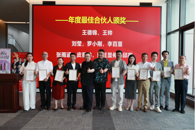 大会现场举行了隆重的年度最佳合伙人颁奖仪式。朱玉童先生和大山先生分别为王帥、王德锦、刘莹、罗小刚、李百里、张宇涵、皮星林、阿旺显奉、邱彦、廖金科、邹功益十余位合伙人颁奖,表彰他们过去一年在品牌营销领域的卓越表现和突出贡献。