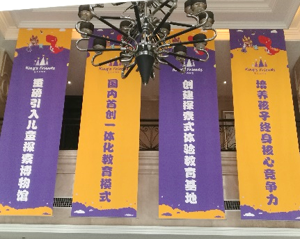 而我们项目组一到国王的朋友,就看到在筹备办公楼大堂挂着四条条幅: