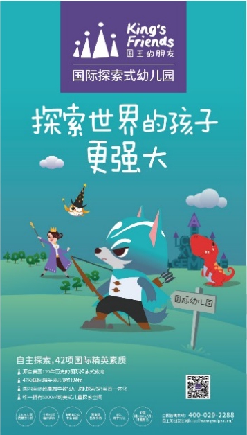 其中,品牌定位是“国际探索式教育开创者”,最重要的品牌主张 —— “探索世界的孩子更强大”,清晰、动人地传达了国王的朋友探索式教育对父母的最高承诺,占据探索这个词,让国王的朋友和探索直接产生关系,而探索世界,是每一个孩子成长的必经之路,因为探索更强大,强大的孩子是国王的朋友给家长带来的根本利益。