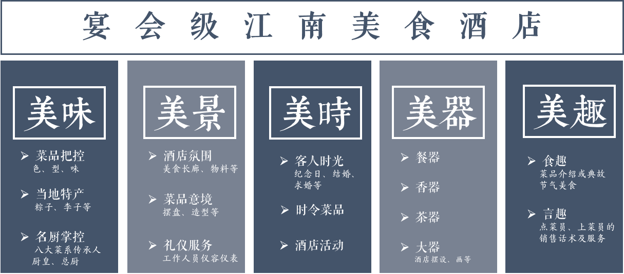 找到江南美食的切入点,“江南”是晶晖自带的天然属性,如何将“美与食”做足,让消费者真正感知到晶晖酒店的魅力点。