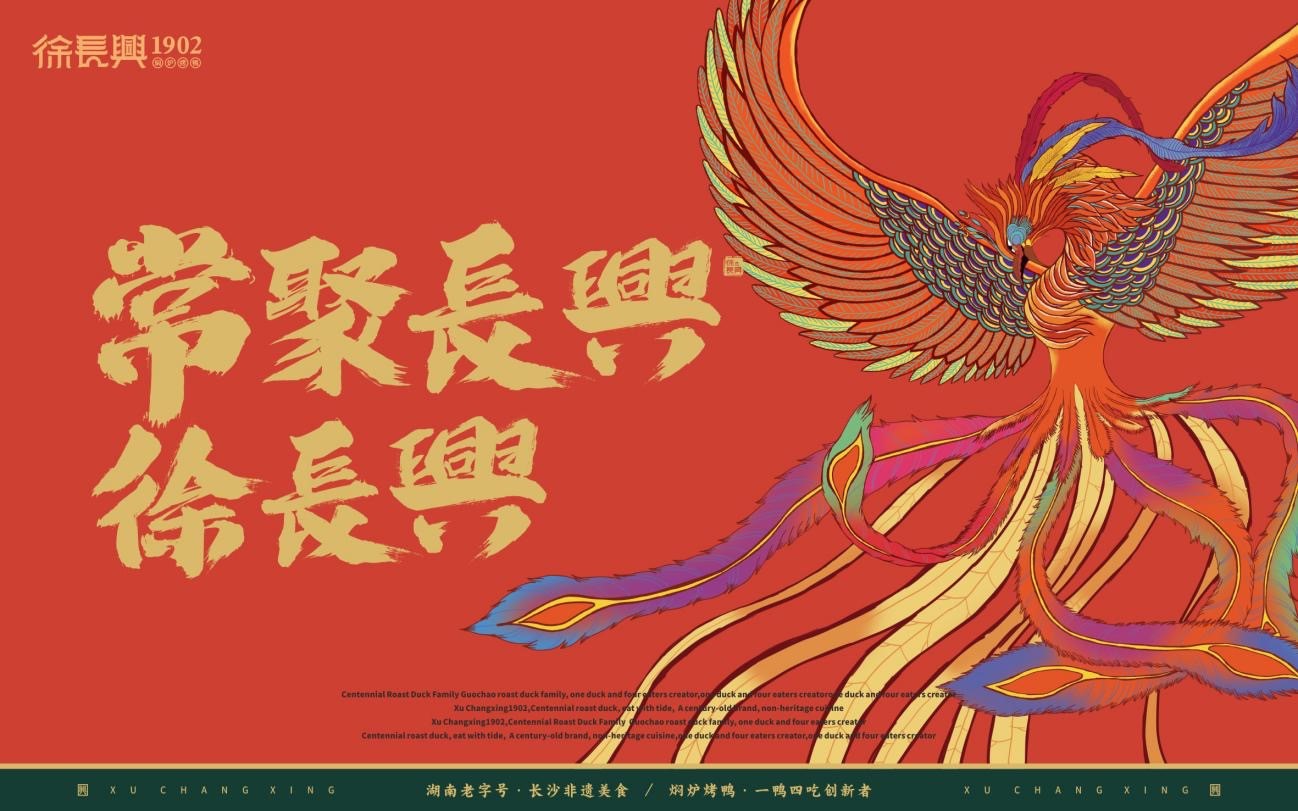 凤凰在烈火煎熬中得以重生和升华,像极了楚人先祖为了生存不畏艰险、勇于开拓的顽强精神,并且一直传承到了现在。徐长兴源自湘楚(今湖南),历经118年,几经停业,几经重建,几经磨难,我们认为,徐长兴就像凤凰一样,积极进取,与时俱进,象征着进取、和谐、兴盛。因此,我们将“凤凰”公共资产私有化,打造了专属于徐长兴精神的“凤凰”IP