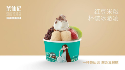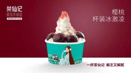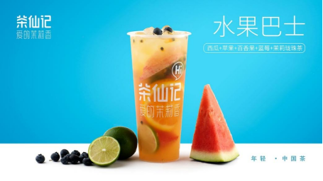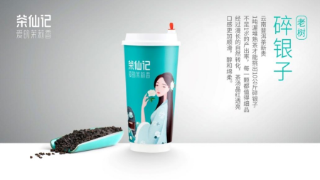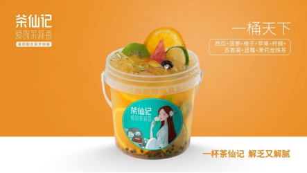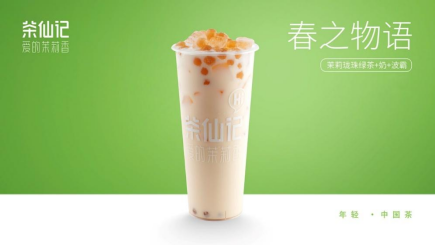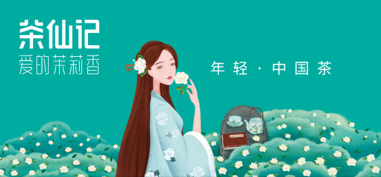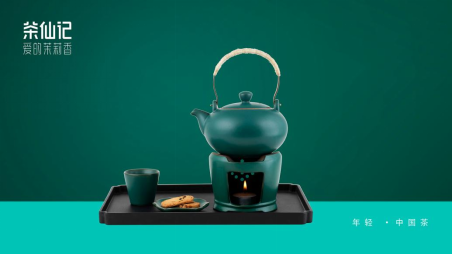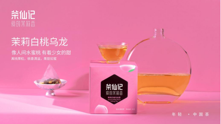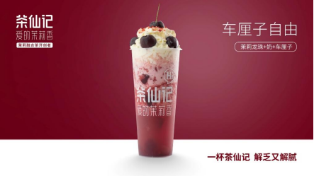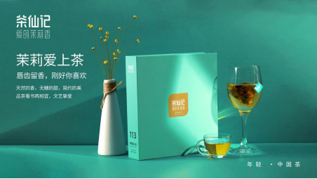 - 茶仙记爱的茉莉香:定位“茉莉花融合茶开创者”,主张“一杯茶仙记解乏又解腻”