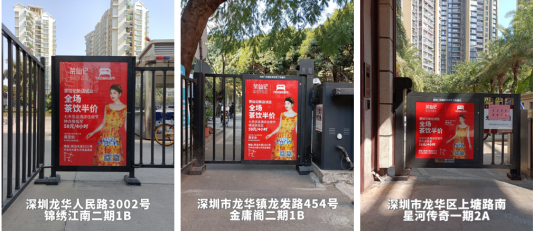 3、社区广告:投放龙华区店铺附近小区内广告牌,精准投放,提高知名度。