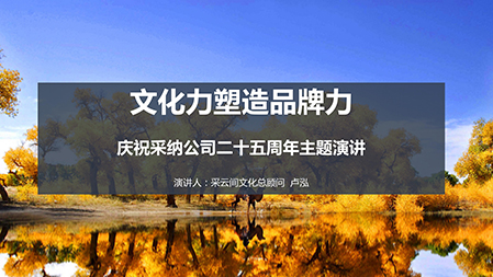 查看详情聚合赢未来——采纳25周年暨品牌+网红+媒介+投资商大聚合,采纳25周年年会上,深圳女企业家协会副会长、采云间(深圳)生物科技有限公司文化总监卢泓女士,讲述了如何用生动的文化打造品牌力! 采纳公司简介 深圳市采纳品牌营销顾问有限公司是由中国著名品牌营销专家、首届“中国十大策划人”朱...