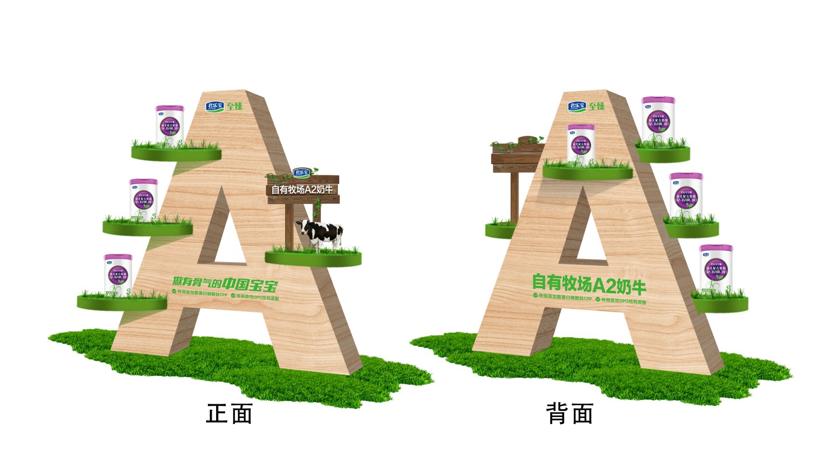 设计师反复创意,最后设计出——用代表A2奶源的“A”结合立体天然牧场,从而打造出“A2奶牛牧场”的独特视觉锤,把“自有牧场A2奶牛”的品牌价值像钉子一样打进消费者的心智,并将视觉锤贯穿整个终端设计,从海报到产品展示,不断强化君乐宝至臻就是“A2奶牛奶粉”的视觉记忆,让妈妈在终端最终改变了自己的品牌意愿,选择了君乐宝A2奶牛奶粉!这就是采纳设计的感受力。