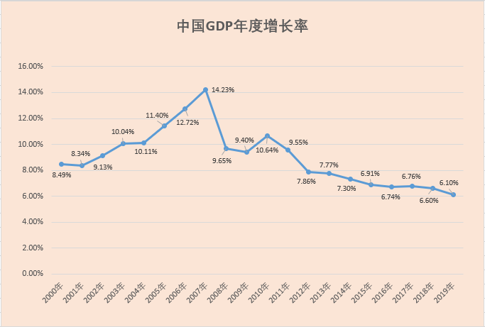 2000年-2019年中国GDP年度增长率