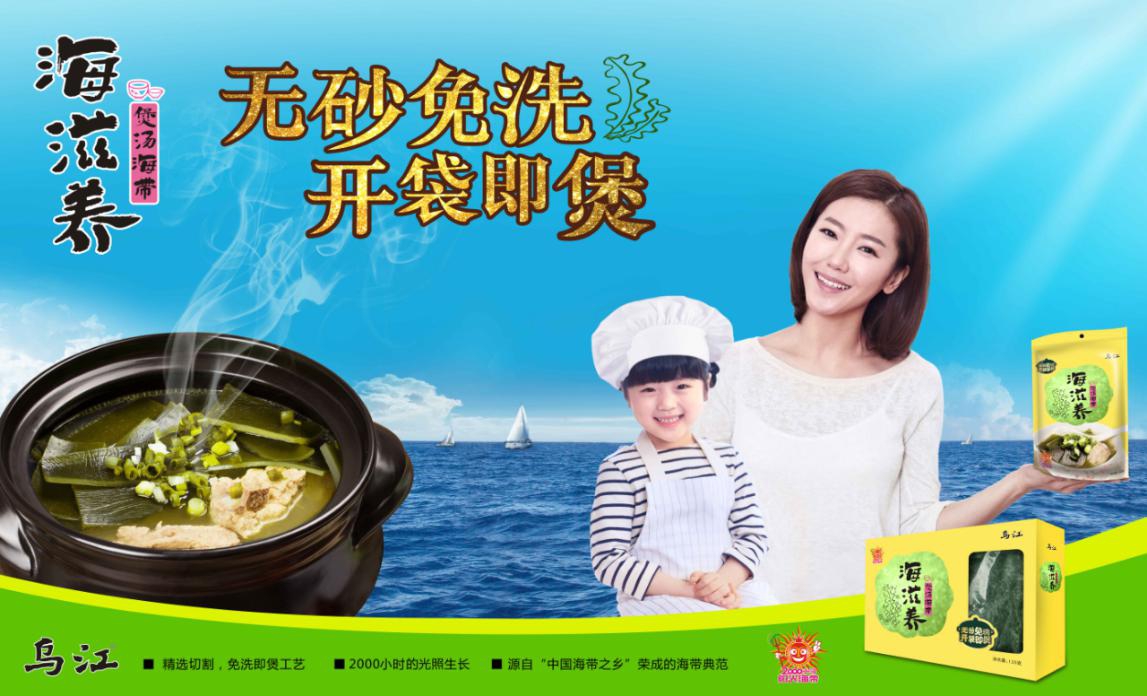 乌江海带是乌江集团在榨菜之后开发的新产品,延续了乌江榨菜的三洗三榨的特点,通过三洗三榨,使得海带没有沙子,更加方便、干净,开袋即煲,营销大师朱玉童带领的采纳专家给乌江海带推出了“无沙免洗,开袋即煲”的广告语,凸显了其卫生、洁净、安全的特点。